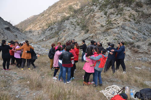 到達(dá)目的地,負(fù)責(zé)人講解了活動(dòng)細(xì)則及注意事項(xiàng)后,大家就開(kāi)始爬山,年輕的員工早已摩拳擦掌,躍躍欲試。在旗手的帶領(lǐng)下,大家爭(zhēng)先恐后的向山頂進(jìn)發(fā)。
