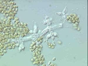 研究發(fā)現(xiàn)木霉菌會(huì)在特定環(huán)境里形成腐霉對(duì)灰霉病菌具有重寄生作用,它進(jìn)入寄主菌絲后形成大量的分枝和有性結(jié)構(gòu),因而能抑制葡萄灰霉病癥狀的出現(xiàn)。